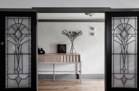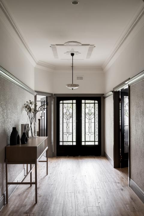 Key Features: Art Deco façade retention, patterned brickwork, arched thresholds, leadlight glazing, single-storey rear addition, steel archway, V-groove two pack joinery, stone thresholds