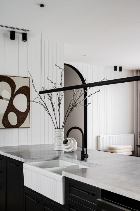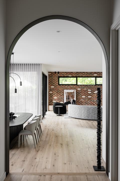 A new living and dining room forms the hinge between the original rooms and the garden outlook, anchored by masonry and controlled openings. Built by TCON in collaboration with John Say Designs and George Marks Design, delivery required careful coordination of structure, services and finishes within the existing shell, including precise alignment of floor levels and set-out to V-groove joinery, stone thresholds and a steel archway. The result is composed and durable, extending the Art Deco language without dilution.