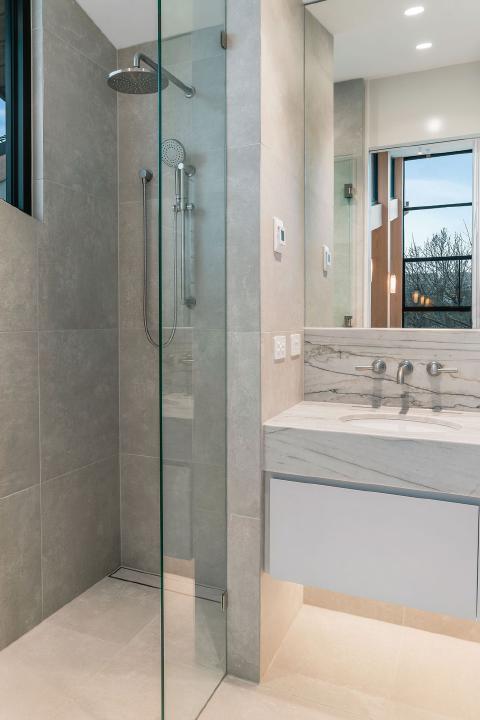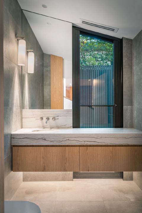 Below, the basement adds substantial amenity while keeping a discreet presence at ground level, including a wine cellar and a car turntable. Built by TCON in collaboration with Byrne Architects and Amelia Barry Interiors, delivery required coordinated excavation and structural integration beneath existing conditions, alongside tight set-out to steelwork, rooflines and large glazing junctions. With careful detailing to external elements and thresholds, the project resolves as a coherent home that holds heritage restraint and contemporary volume in balance.