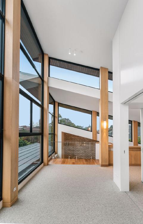 Key Features: Heritage brick façade retention, cathedral rear volume, basement construction, wine cellar, car turntable, expressed structural steel, double-height glazing, timber-lined elements\