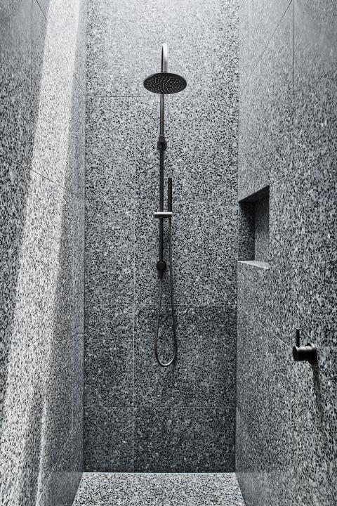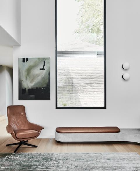 The stairwell and adjacent courtyard sit between old and new which includes the kitchen, meals, living on the ground floor, the master domain on the upper and the gym, cellar and sauna in the basement. A formed concrete loggia protects the northern glazing and curves to the east covering the outdoor entertaining area and sunken lounge pit.