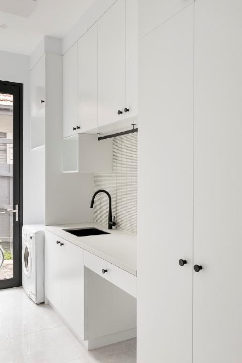 An original California bungalow has a renovation that extends past the front doors and opens up into a large scale, second storey renovation. The expansion of the home leaves all the original features at the front, pays tribute to the heritage of the streetscape, while allowing a contemporary architectural extension and fit out internally to the rear.
